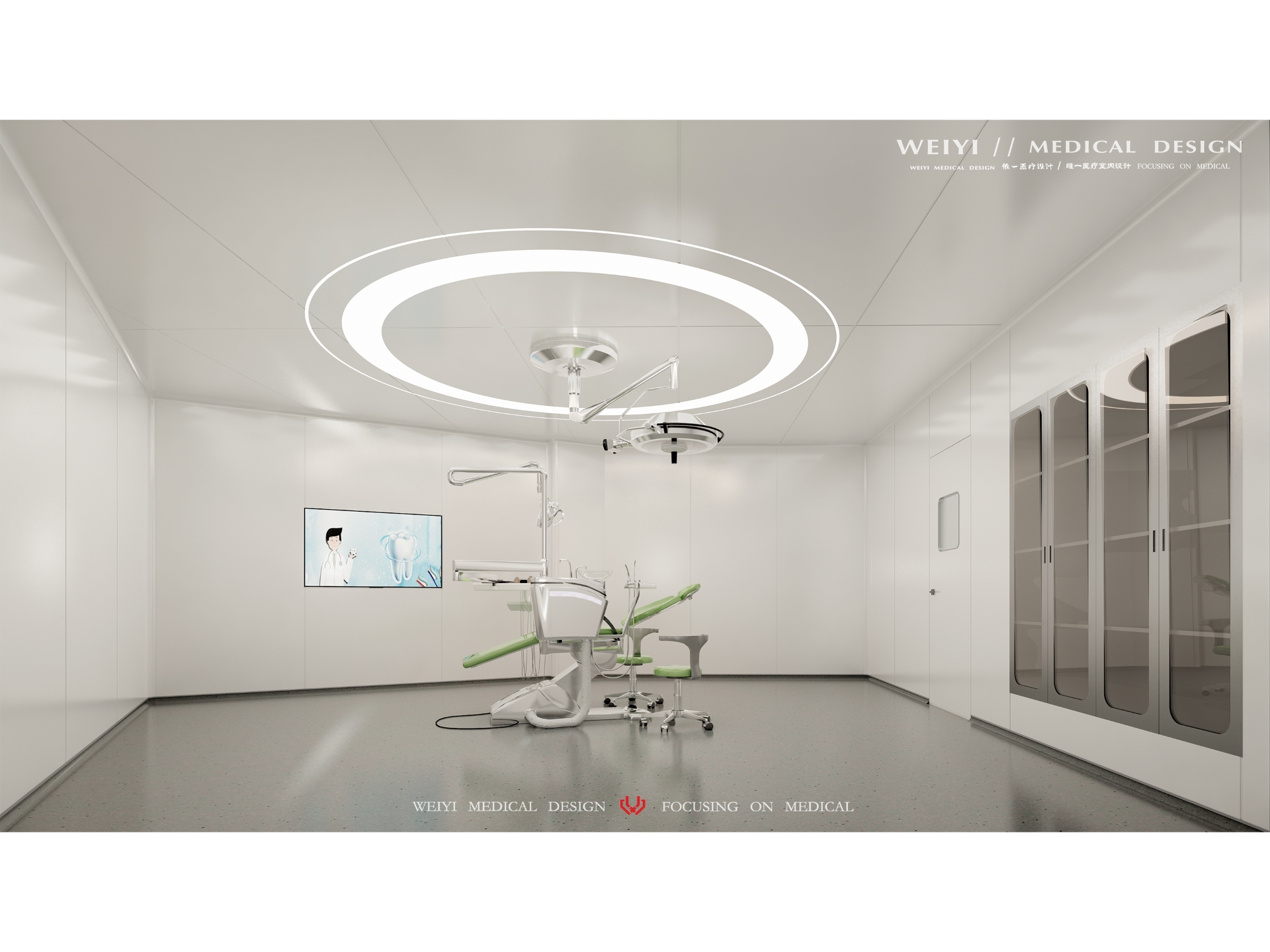 淡雅奶油色铺陈出明亮通透的基调,原木饰面的温润肌理自然舒展,消解了口腔空间的紧绷感。